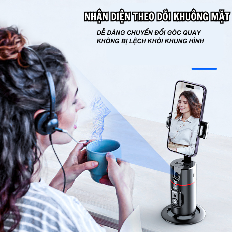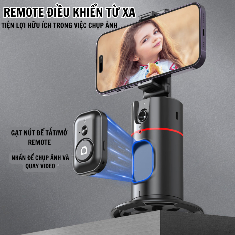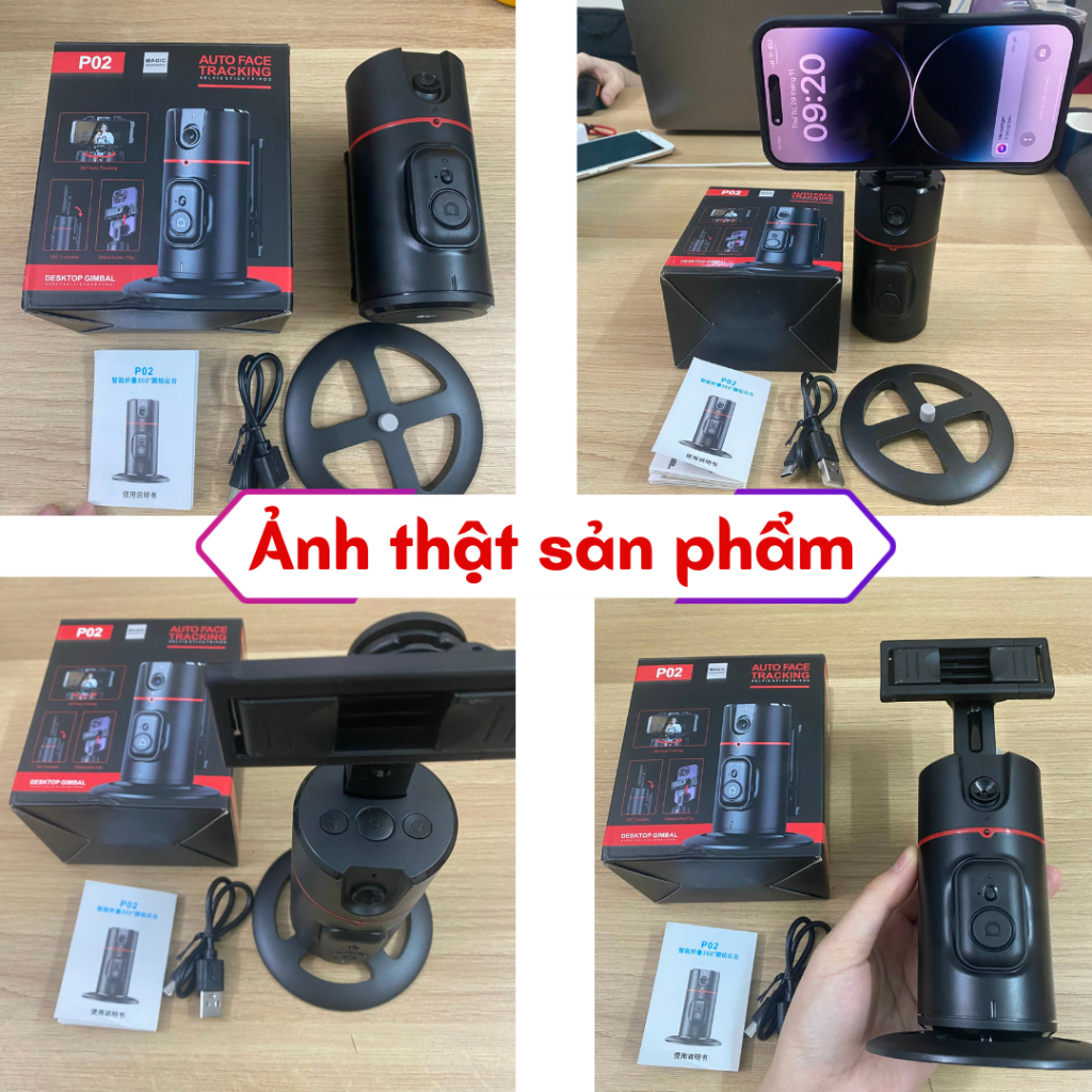 Gimbal P02 có nhận diện khuôn mặt, Giá đỡ điện thoại dùng remote, camera AI livestream, selfie, tay cầm chống rung